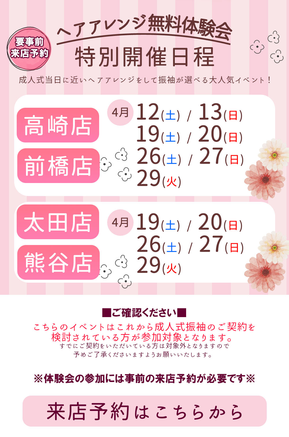 成人式当日のヘアメイク・着付け 無料